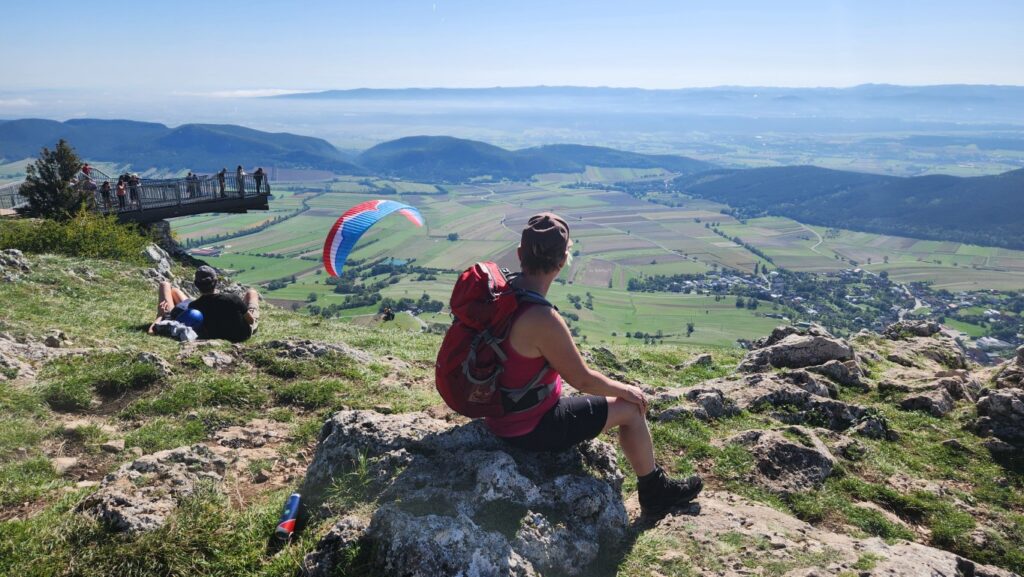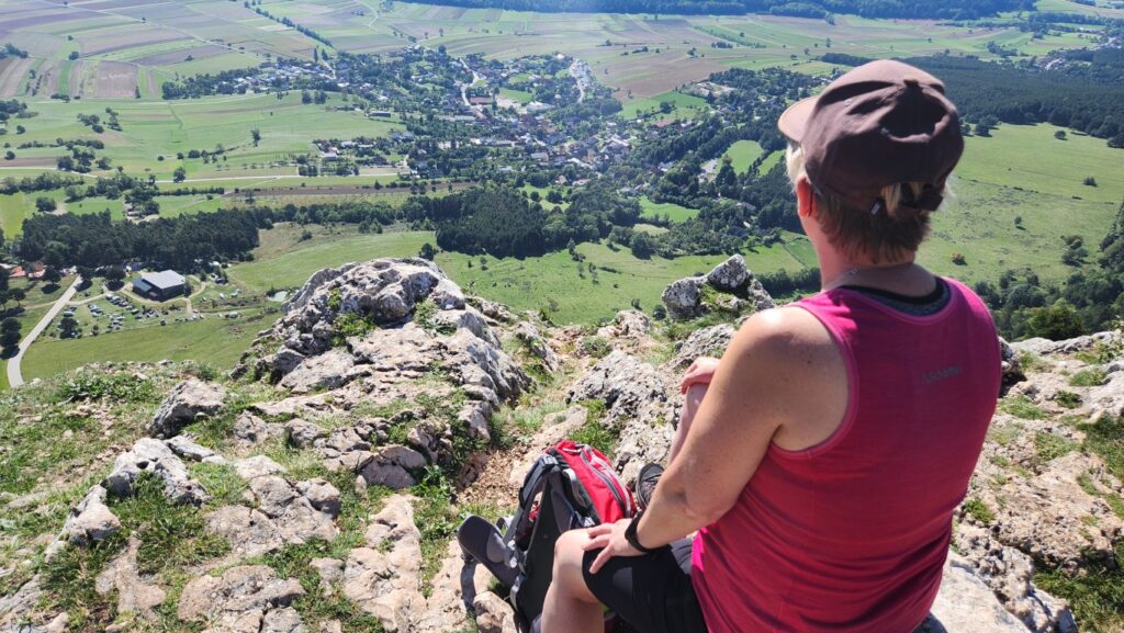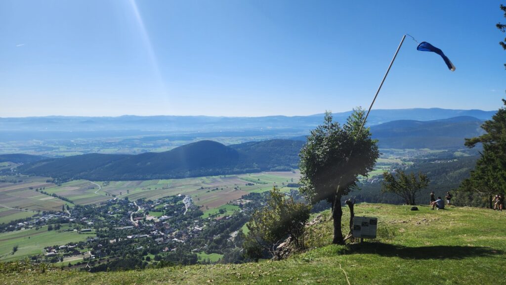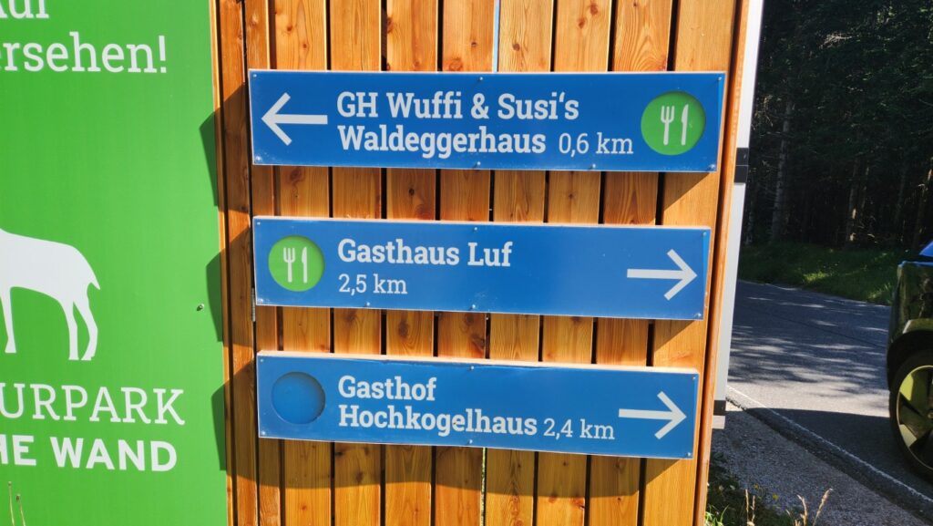Es ging los mit Frühstück bei herrlichem Wetter. Sabine versuchte noch einen Baum zu verschieben, der sich ohne Erlaubnis von der Truppe entfernte. Bei ihrer Kraft ist ihr das mit Sicherheit gelungen. Durch den idyllischen Wald, der ausreichend Schatten spendete, ging es ~45min zum Gasthof Postl. Ich bin immer wieder erstaunt, wieviel ein Sommerspritzer kosten kann. Es ging weiter zum Sykwalk-Cafe, das leider geschlossen hatte. So genossen wir die Aussichtung sahern den wagemutigen Paragleitern zu. Genug gesehen wanderten wir weiter über die Lange Wiese, am südwestlichen Fuß des Liederlichsbergs hinauf zur Kohlmais, dem dort ansessigen Waldeggerhaus. Speis und Trank wie immer ein wahrer Genuss bei lustiger Gesellschaft. Ein Hoch dem Waldeggerhaus! Natürlich darf die Nachspeise nicht fehlen. Ich sollte ein Stück holen, hmmm … habs wohl falsch verstanden und brachte jedem eines. 😁