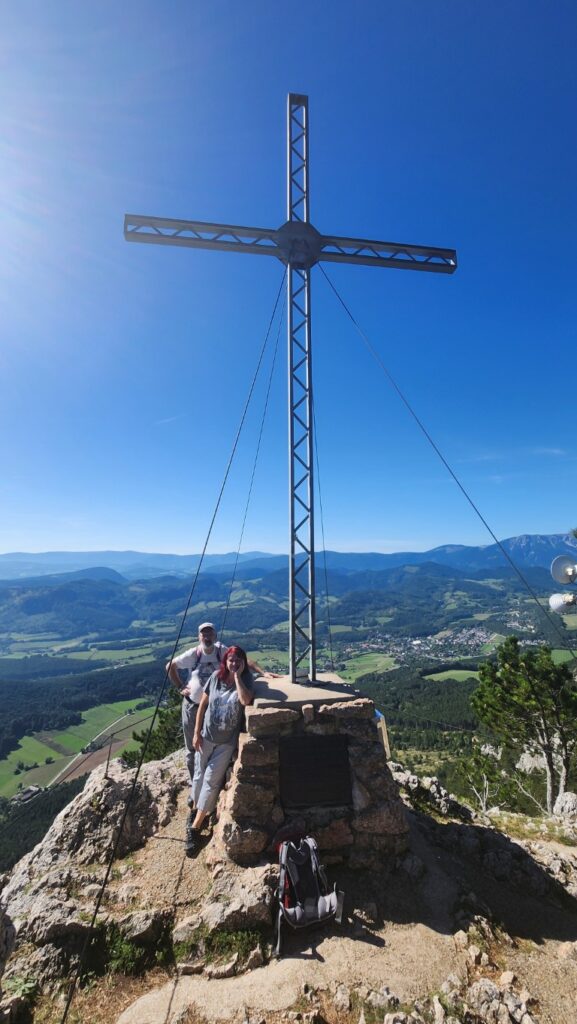 Sabine und ich gingen nach einem gschmackigen Frühstück von der Rohrbacherhütte los, um bei der Kleinen Kanzel auf unsere Freund zu warten. Dann gings aber auch gleich los. Wir marschierten durchs Wanddörfl bis zur Willhelm Eichert Hütte, wo wir zuerst beim Wildenauer Gedenkkreuz posierten und die Aussicht genossen. Wir stärkten uns und marschierten zurück zur Kleinen Kanzel. Dann gings per auto zum Luf auf eine warme Mahlzeit. Schön wars 😊